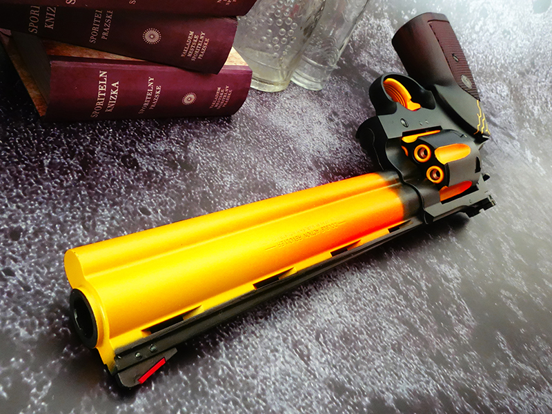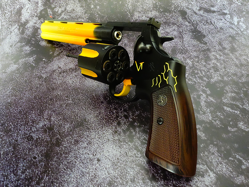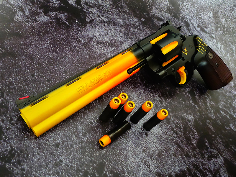 マルシンのコルトアナコンダをベースに「地獄の炎を宿したマグナムリボルバー」をイメージして製作したワークショップカスタム。