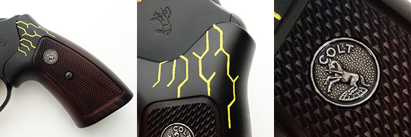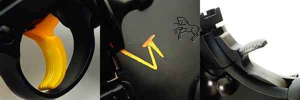 トリガーはバレル同様超高温になっており、通常の人間では触れることすらできない。ハンマーは通常通りで操作可能。フレームに刻まれたローマ数字は弾丸を発射するごとに残弾数の数字に変化すると言われているが、まだ1発も発射されていないため定かではない。