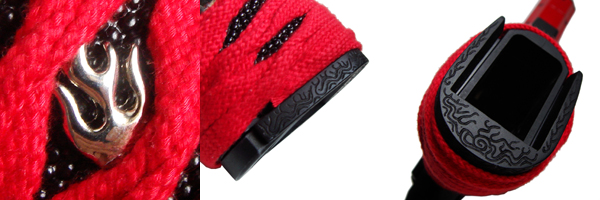 両側面には炎モチーフのメタルパーツを「目貫」として装着しています。