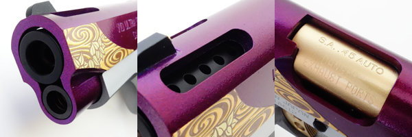 銃身長2寸4分、艶消し黒染め仕上げのコーン型バレル。上面に10個のガスポートがあり、発射時にはスライド上部に開けられた穴を通して発射ガスを逃がして発射の強烈な反動を抑える。エジェクションポートは純金コーティング仕上げ。