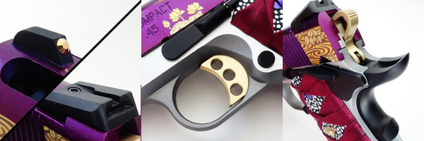 ○トリガー&ハンマーはゴールド塗装&ジルコニアコーティング。その他パーツはマットブラック塗装仕上げです。