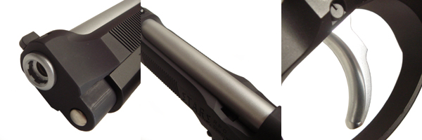 一番の特徴はショートバレルとフレームテールのカット処理。またホルスターへの干渉を極力減らすため、各部の操作系パーツがフラットに仕上げられた。