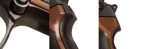 トリガーガードとグリップ付け根をしっかり削り込んでフラットに仕上げました。