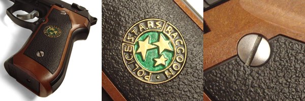 専用グリップにステンレス製グリップスクリュー、レベッカのパーソナルカラーである「グリーン」をベースにした専用メダリオンが埋め込まれている。