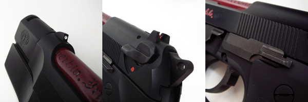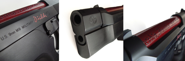 スライド自体に形状の変化はなく、フロントにPB(おそらくピエトロ・ベレッタ社)のロゴの入ったコンペセイターが装着されている。また、それと一体化するようなフォルムでフレームも延長されている。悪魔の力で通常の9mm弾薬以上に威力が増しているため、その反動と銃本体にかかる負荷を抑える目的と見られる。
