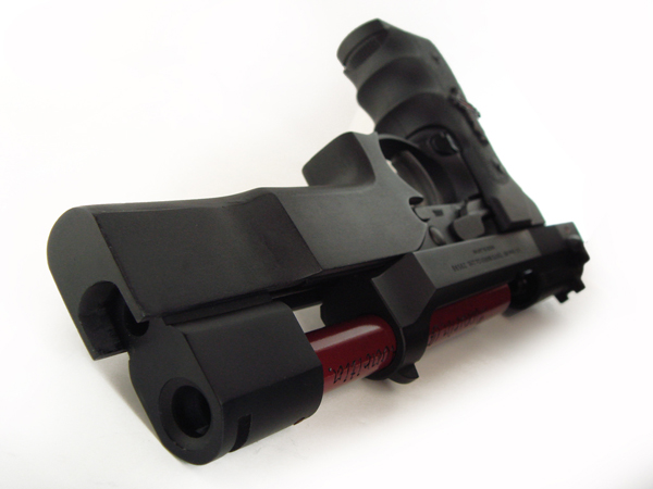 ロングタイプに交換されている。「弾薬が尽きない」というのはやはり単なる噂で、しっかりと弾切れもホールドオープンもするようだ。 ○タクティカルマスター用の純正ロングスライドストップに交換しました。