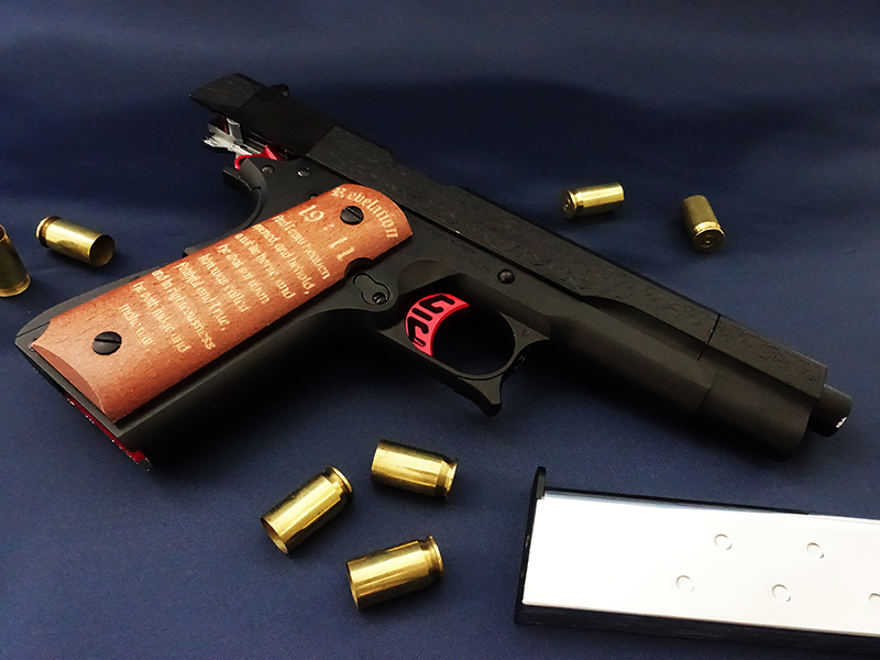ベース実銃は銃器メーカーのコルト社によって軍用に開発されたコルトガバメント。1911年にアメリカ軍に制式採用され、軍用拳銃として後継となるベレッタM92Fが制式採用されるまで、実に70年以上にわたってアメリカ軍の制式拳銃として使用されました。「シリーズ'70」は70年代から販売された民間用モデルで、このモデルは競技銃に改修されるベースガンとして中古人気が上昇し、一時期にはプレミア価格がついたりもしたそうです。