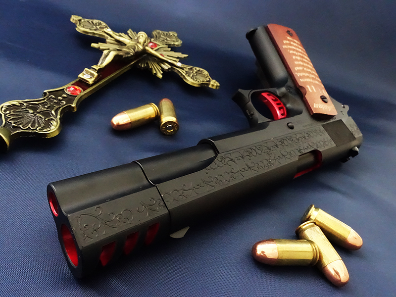 ガバメント'70を使っていかにも悪魔狩り用っぽいオカルティックなデザインに仕上げました。