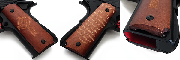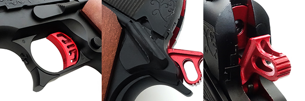 トリガーガードは独特の突起が追加され正面に十字架飾りが追加されている。これは悪魔によるトリガーへの干渉を防ぐ防御機構。トリガーは真紅で透かしの入った形状。ハンマーもオーバルタイプで大きく肉抜きされた形状。