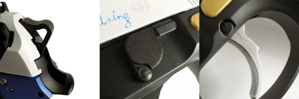 極限まで短く削り落として、激しいアクション時も誤動作を防止。指のあたる上面は斜めにカットし、ボタン周りも広めに空けてあるので確実なマグチェンジが可能になっている。