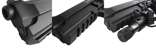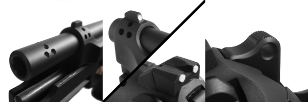フロントに合計6つの「ガスホール」が設けられており、9mmHP弾の発射反動を軽減する。