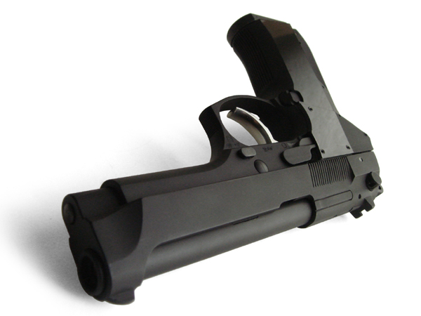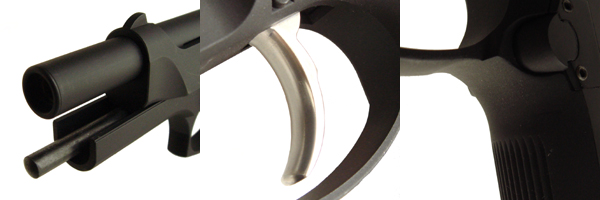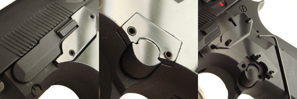 一見するとオリジナルとの差異がわかりにくいが、その実かなりの形状変更が成されている。スライドの肉厚を減らすということは(そのままの素材では)強度と耐久性が激減する反面、スムーズなホルスタードローと、スライド後退スピードの向上によって連射性が増す。
