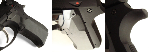 パネルの厚みが減ったことでホルスターに収納した際に、より体と密着させて携帯でき、動作の妨げになりにくい。また握りやすさの向上はもちろん、ネジ止めされたパネルを取り払ったことで握った際のたわみや「ギシつき」がなくなり、銃と体の感覚を結び付けやすい。