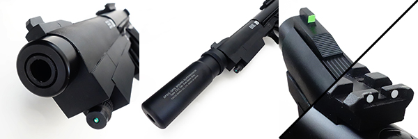 サプレッサー装着用のネジが切られたマズル。 ○純正そのまま。内部のインナーバレルは先端を黒染めしているので銃口を覗いても目立ちません。