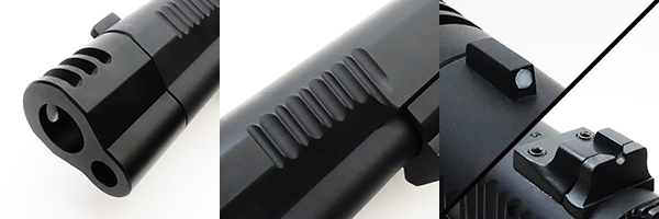 スライド先端にはマズルブレーキタイプのコンペンセイターが取り付けられており、発射反動を抑えて命中精度を高めている。スライドは前方にセレーションを追加して緊急時やチャンバー内の弾の有無確認の際につかんでスライド操作をしやすく改良されている。