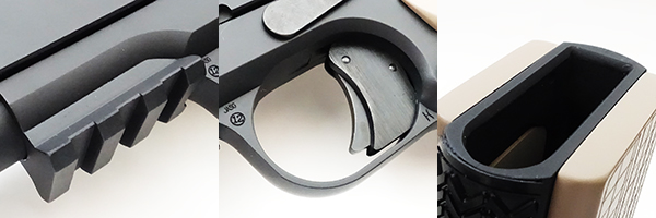 フレーム下に短いピカティニーレールを増設しており、現代的な各種オプション機器を装着できる。