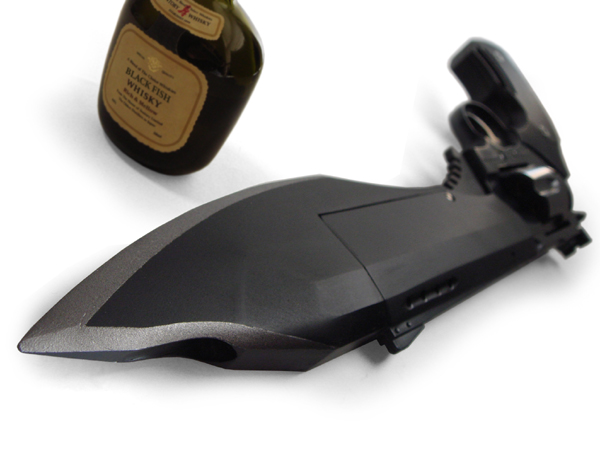 デザインはグリップの項でも書いたとおり、銃というよりナイフを参考にしています。特にリボルバーの曲線的なラインは刃物と意外に相性が良いらしく、かなり自然にまとまりました。
