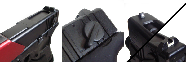 通常はこのレーザーサイト使用が前提となっているため、スライドのフロントサイトはスライドプロテクターに覆われている。