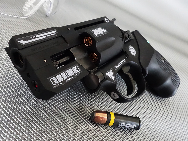 ベースは旧時代のリボルバー拳銃・M36。38スペシャル弾を5発装填できる骨董品で、サイズも小さいので持ち運びには便利だ。