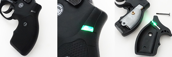生体認証機能付きグリップで、登録者以外が握るとトリガーとハンマーにロックが掛かる。ロックが解除され発射可能状態になると緑のランプが発光。これは握ると指に隠れるため、光で敵に位置を悟られる危険はない。