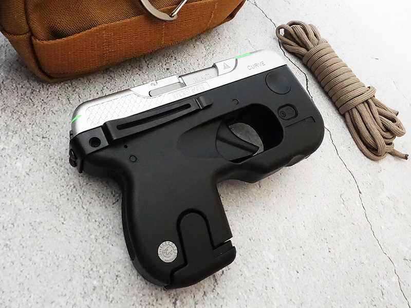 同年代の見た目のよく似たポリマーフレーム銃達のなかでも一目でそれとわかる特徴的なデザインのCURVEは.38口径6発装填の小型オートマチック拳銃。