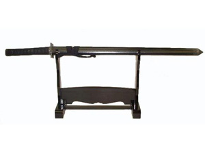 オーダー製作:2008年9月2008年6月に発表した和拵えシリーズの「蒼流菊花」→のデザインを見て、いたく気に入ってくださったご依頼主さまが、これをデザインベースとして色を黒で統一し、「忍者」をイメージしたオリジナル作品を製作して欲しい、とご依頼くださったオーダーカスタムです。
