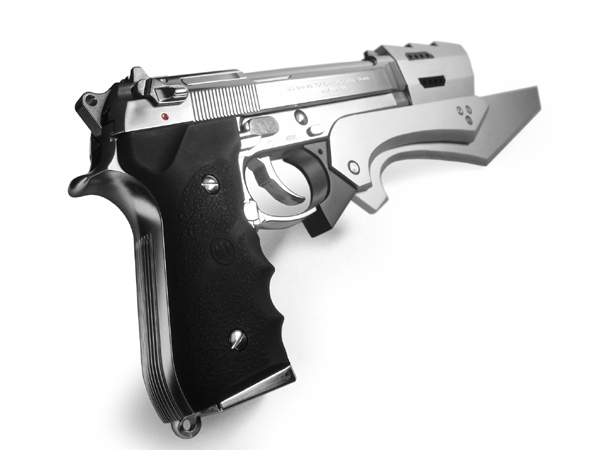 実銃はイタリアのピエトロ・ベレッタ社が生産・販売している9mm口径の半自動拳銃ベレッタM92F。