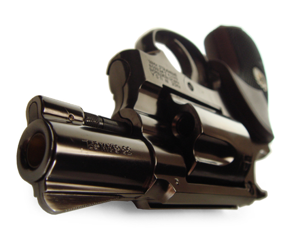 S&W社の規格では一番小さいJフレームを使用。左面にはS&Wのロゴマークが刻印されている。 ○未加工。