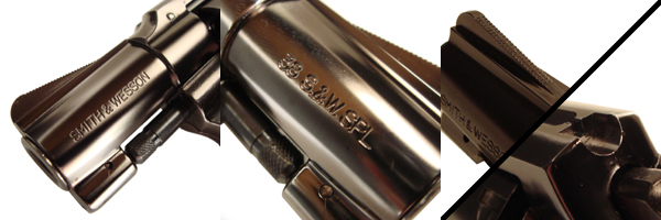 左面にはSMITH&WESSON、右面には38 S&W.SPLの刻印。