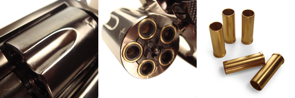 装弾数を5発に減らし、サイズダウンした小型シリンダー。 ○未加工。プラ製ですが、完全に貫通式のリアルな造りです。