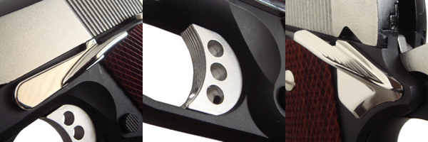 トリガーブルは3.5ポンド程度で通常より1.5ポンドほど軽い。前面には滑り止めグルーヴがついており、側面には未貫通の6つのホールが開けてある。