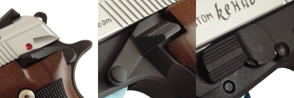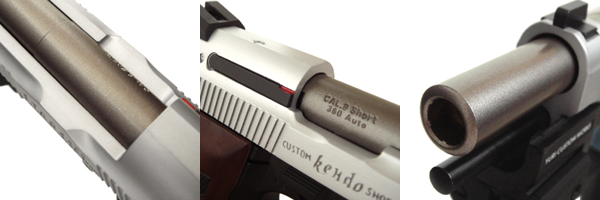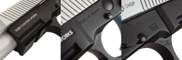 このパーツは「ケンドの友人」なる市外のガンスミスが助っ人として製作したもので、左側面にはそのカスタムメーカーのネームプレートが埋め込まれている。