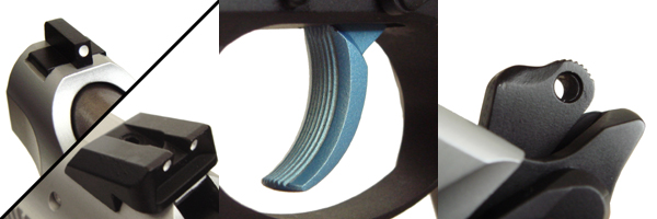 フロントはドブテイル、リアはノバックタイプの白3ドット仕様。瞬間的なサイティングが可能。 ○純正サイトそのまま。「タクティクス」の特別パーツで、まさにサムライエッジ系にピッタリです。
