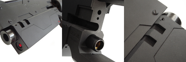銃の下側に位置するバレル。先端にガスポートも設けられている。単なる跳ね上がり抑制の機能だけではなく、実はこのバレルにはロストテクノロジーの高等技術が詰め込まれており、後述する「SAS」がその正体。