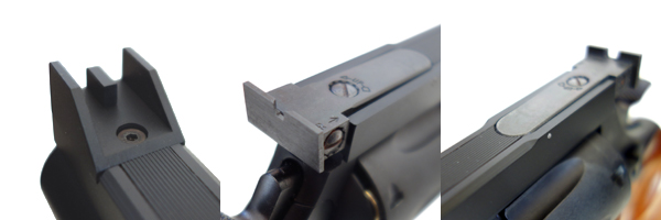 PPCマッチカスタムでよく見られる肉厚の『ブルバレル』のデザインを再現しています。ブルバレルは銃身を太く重くすることで発射時の振動(ブレ)を抑え、命中精度を高める為のカスタム。