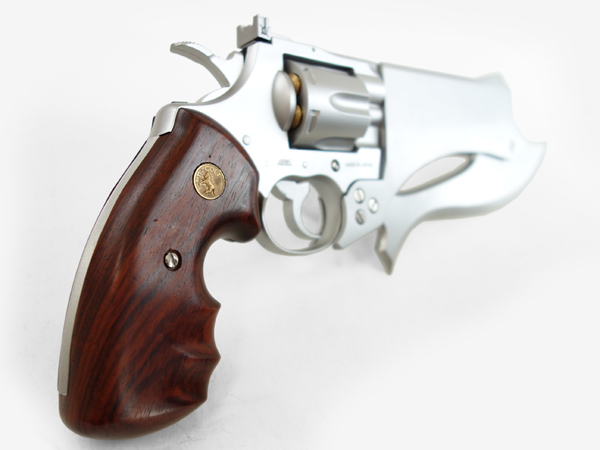 実銃は1956年にコルト社が開発した.357口径の大型リボルバーで、仕上げの高級さと高価格から「リボルバーのロールス・ロイス」とも呼ばれています。構造上多くの手作業での調整と念入りな仕上げを施された、まさに「熟練の技による名銃」。