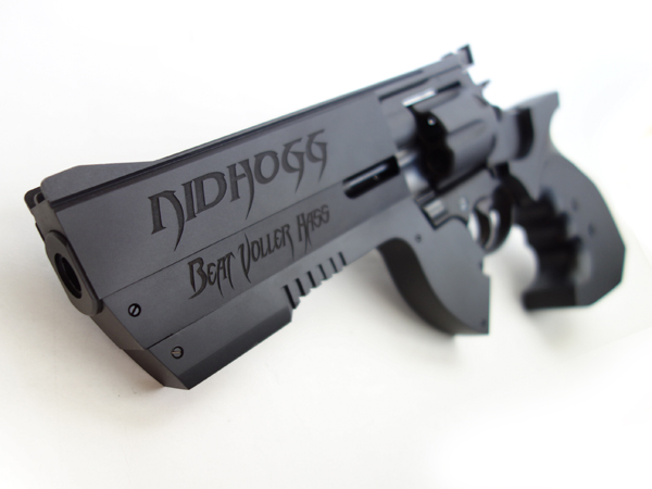 また、フレズヴェルグ(“死体を呑み込む者”)という対の自動拳銃が存在する。