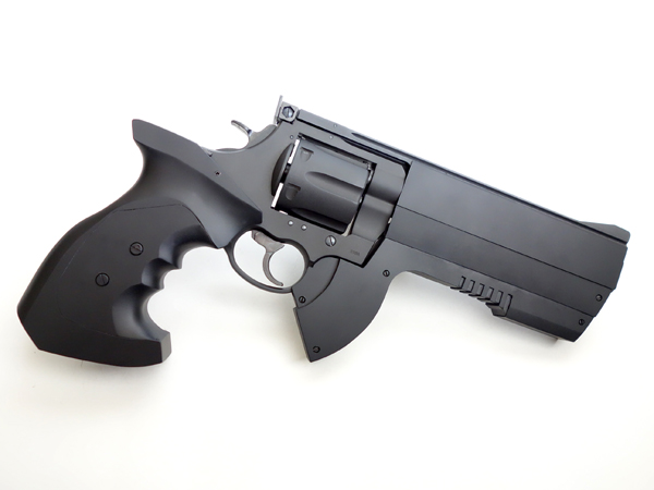 このアナコンダをベースに、ユニークな機構やアイデアが売りのマルシン工業がデザインにアレンジを加えたオリジナルモデルシリーズのひとつがこの“コンストリクター”。「Xカートリッジ」というメタルカート装填式のガスリボルバーで、グリップ内にガスタンクを内蔵している構造はマルイのガスリボルバーと同じ。マルシンは“大口径の迫力”という特徴を「8mmBB弾」という独自のBB弾規格でダイレクトに表現しています。コンストリクターは特徴的なウイングサイトや大型スクエアバレルなど、PPCスタイルのリボルバーを意識した仕様で、その圧倒的なボリュームと重量感が魅力のモデルです。