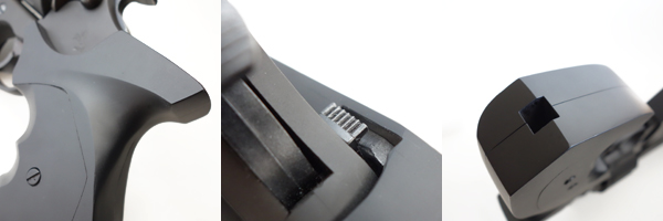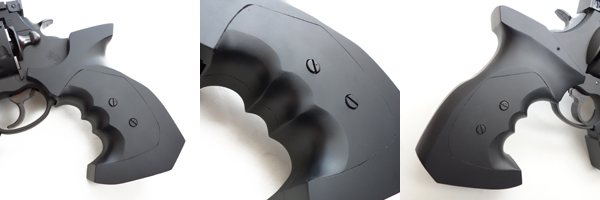 競技射撃用グリップにも似たスタイルで、完全右手用形状。