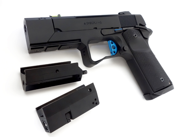 このデトニクスのスライドとガバメント系のフレームを組み合わせ、さらに近接戦闘に特化したカスタムモデルを、性能・品質共に信頼性抜群の東京マルイがモデルアップ。マズル面をスパイク状に加工した「ストライクプレート・コンペンセイター」やレールマウント、マグウェルなど、随所に現代的なCQBカスタムアレンジを加えており、コンパクトスライドのショートリコイルと相まってトイガンとしても非常に実用性の高い内容のモデルだと思います^^