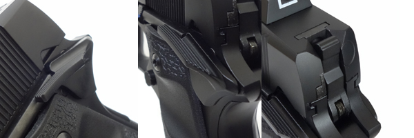 セイフティとしての機能はキャンセルされている。これは単独での潜入作戦では、突然の戦闘で不自然な角度から銃を抜き撃つ可能性もあり、より素早く確実に撃てることが優先されるため。同時にテール部分はフレームに合わせて程度に極度に削り込まれており、サイズを抑え、スイッチング(銃の左右持ち替え)もしやすく工夫されている。