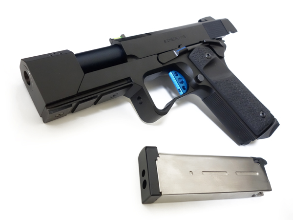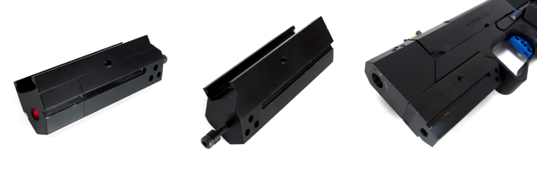本来は3.5インチのコーンバレル仕様だが、4.6インチのストレートバレルに交換されている。 ○ライラクス製ノンリコイルアウターバレルを使用しました。