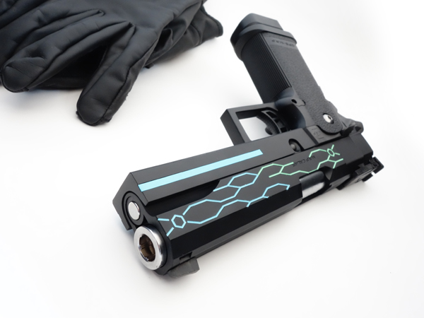 マルイ・ガスブローバック「ハイキャパ5.1」をベースに、スマホアプリゲーム「Ingress」の世界観で、エージェント専用銃というコンセプトでオリジナル製作したオーダーカスタム。