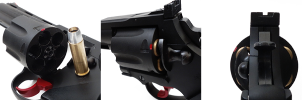 バレルと同じく.454カスール弾用に径の拡張改造を施されたシリンダー。さらに残弾インジケーターも追加されている。