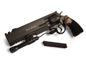 マルイのガスリボルバー(新型)S&W M19 6インチモデルをベースに、かつてのアンブレラ保安警察(USS)用に開発された試作マグナム というイメージで製作したオーダーカスタム。