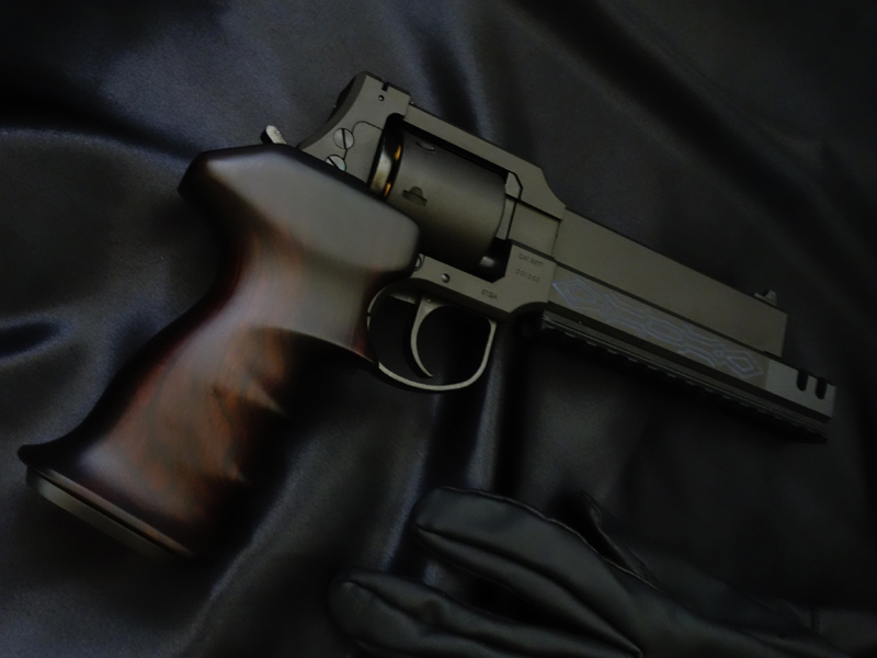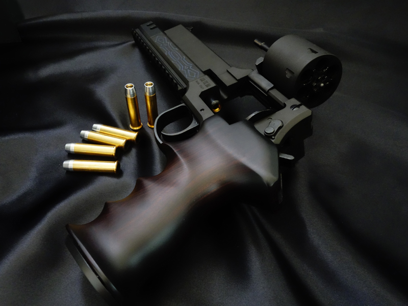 実銃はイタリアのイタリアのマテバ社が1990年ごろに競技用として販売していたリボルバー拳銃「マテバ2006M」。