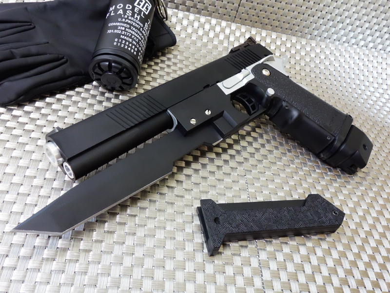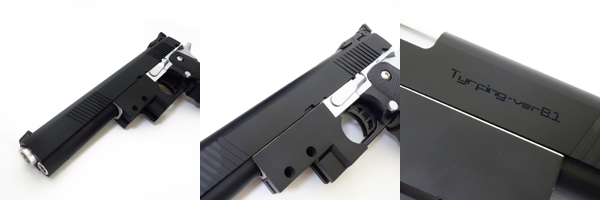 ○ライラクス製のロングスライドに交換。刻印を消して右面にだけ銘をレーザーで彫り直してもらいました。