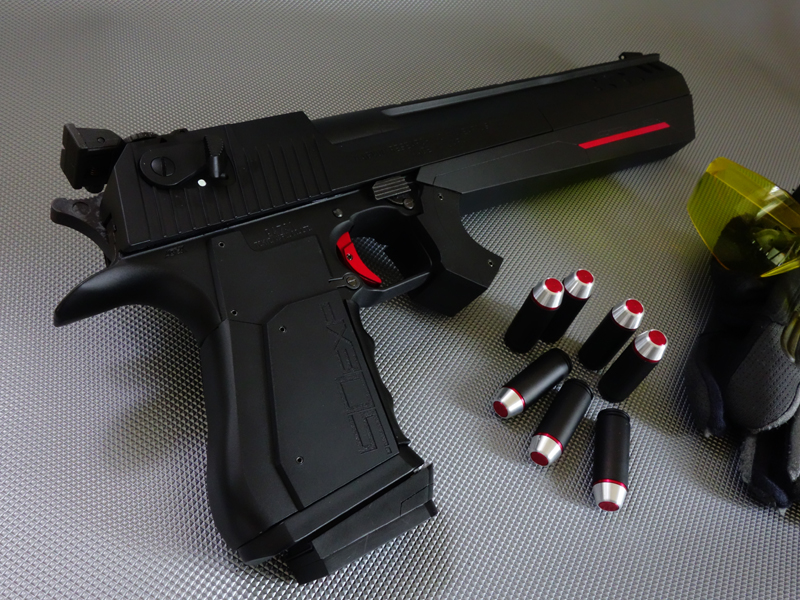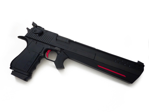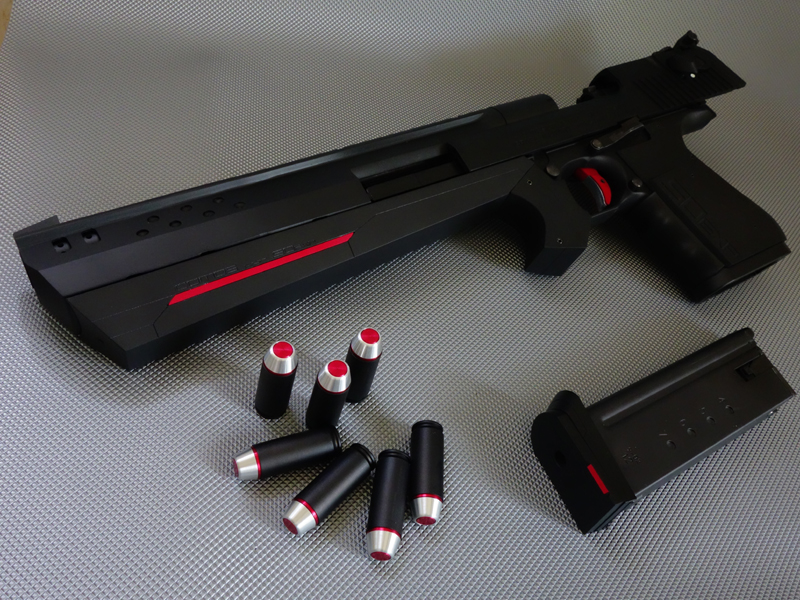 一昨年開発された本モデルはIWI社のデザートイーグル.50AEをベースとしたカスタムマグナム銃で、全長380mm、重量3.79kg。シングルアクション/ガス圧作動式。