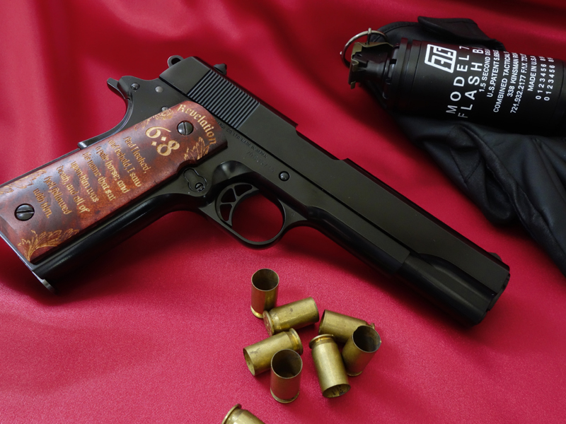 マルイのガスブローバックガン「コルト ガバメント マークIV シリーズ'70」をベースに、「神の名のもとに悪人を始末する聖職者の銃」という設定で製作したオリジナルカスタムです。