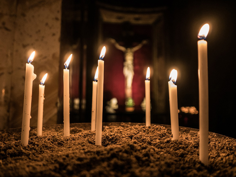真夜中の修道院で一人の男が一心に祈りをささげている。